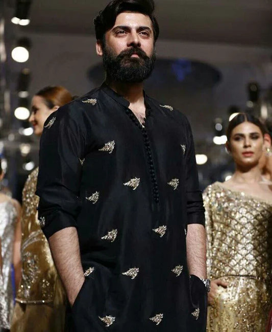 Black Dragonfly Embroidery Worked Wedding Kurta