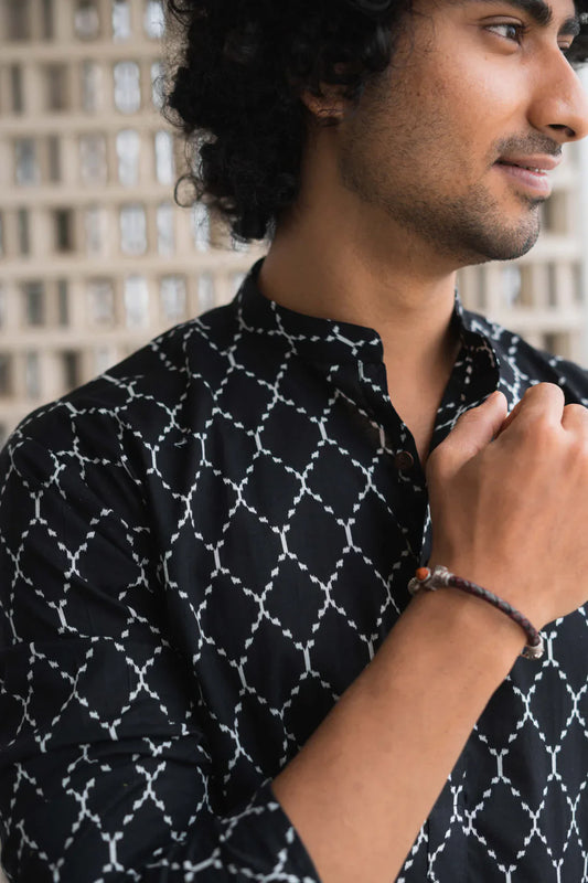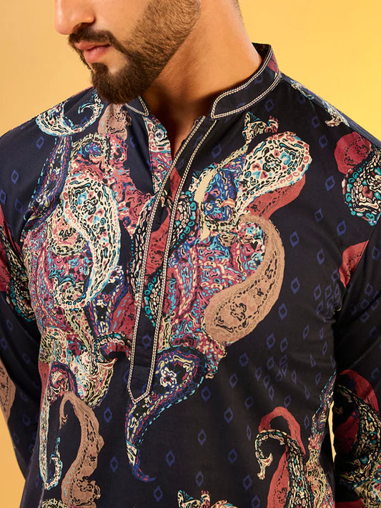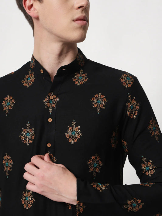 Men Black Printed Cocktail Party Kurta