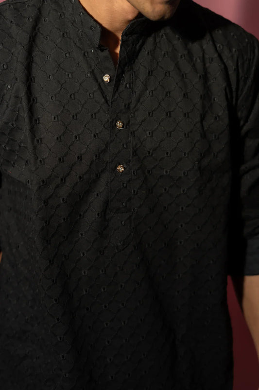 Black Silk Designer Grooming Wedding Kurta