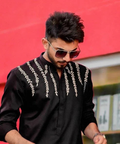 Black Dragonfly Embroidery Worked Wedding Kurta